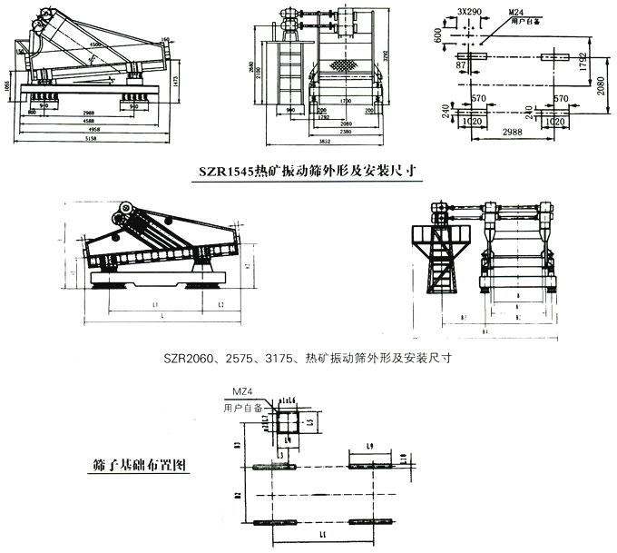 SZR系列熱礦篩均配備二次隔振系統(tǒng),對(duì)基礎(chǔ)的動(dòng)負(fù)荷較小,使用于有隔振減要求,安裝高度允許的場合。